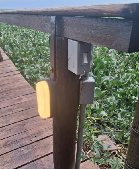 A luz do deck pode ser ligada no corrimão logo na entrada, como na foto abaixo.